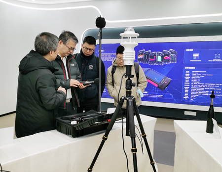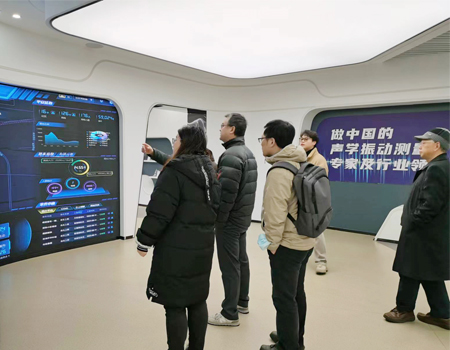 隨后一行人參觀了公司聲學與振動實驗室,在公司和浙江省計量科學研究院共建的全國首個噪聲測量儀器遠程智控方艙計量實驗室,領導們對應用數字技術通過遠程智能控制、環境安全監控、數據智能處理等模式開展噪聲儀器遠程在線自動檢測表達了濃厚興趣。